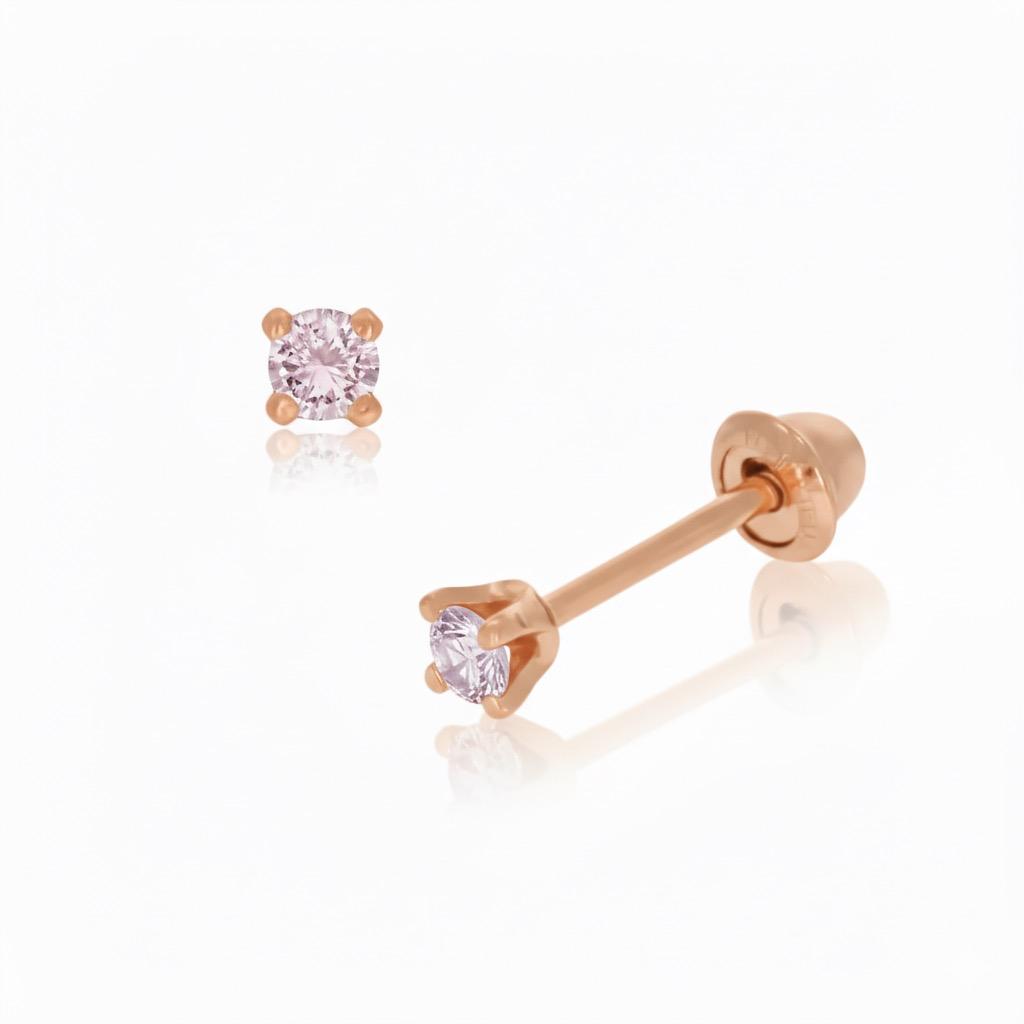 Broquele solitario con Zafiro Rosa Natural en Oro de 14 Kilates. Disponible en dos medidas chico con .17 ct y mediano con .26 ct en total.