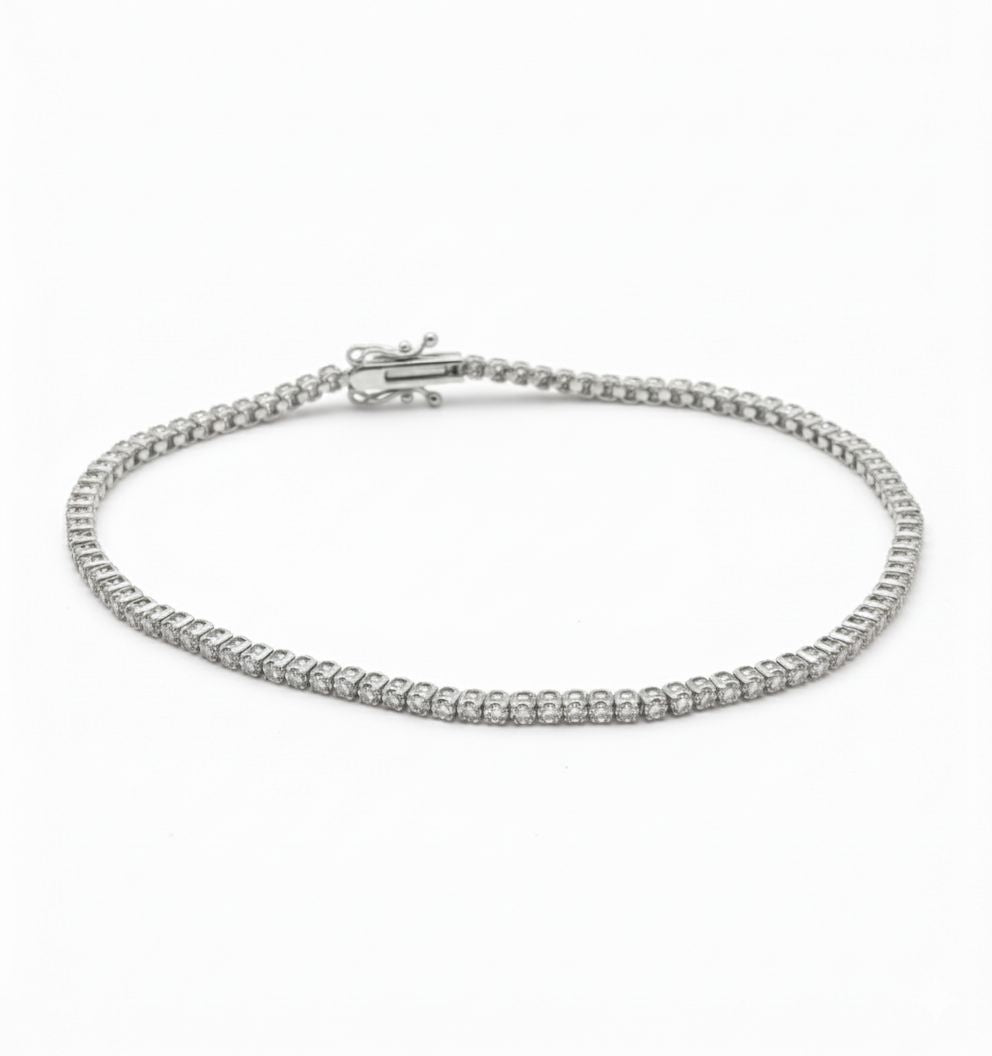 Pulsera con BRILLANTES NATURALES 1.00ct. en total a lo largo de la misma, Oro de 14 Kilates. La pulsera es de 18 cm y cuenta con broche de seguridad.